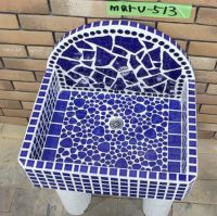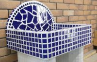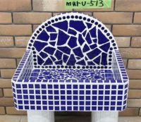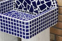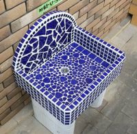 モルタル下地にモザイクタイルを張ったタイル流し台。