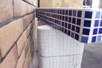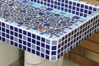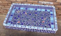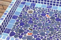 モルタル下地にモザイクタイルを張ったタイル流し台。