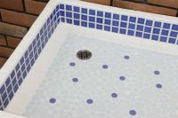モルタル下地にモザイクタイルを張ったタイル流し台。