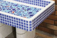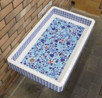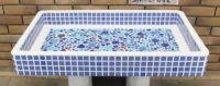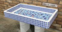モルタル下地にモザイクタイルを張ったタイル流し台。