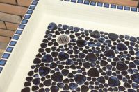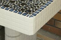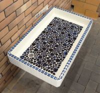 モルタル下地にモザイクタイルを張ったタイル流し台。