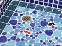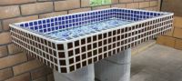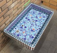 モルタル下地にモザイクタイルを張ったタイル流し台。