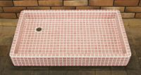 モルタル下地にモザイクタイルを張ったタイル流し台。