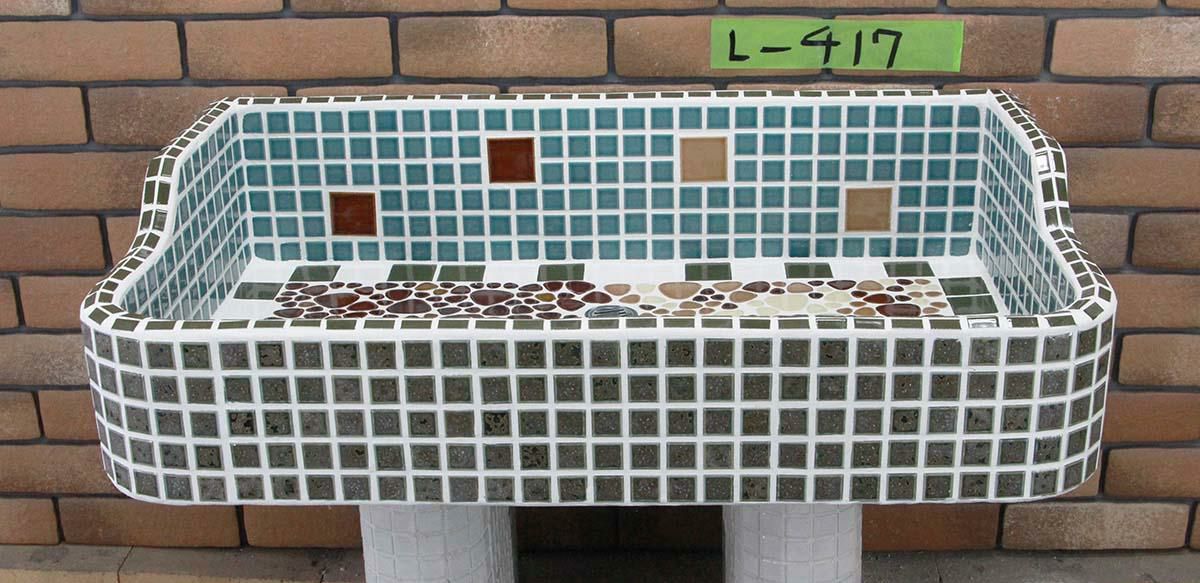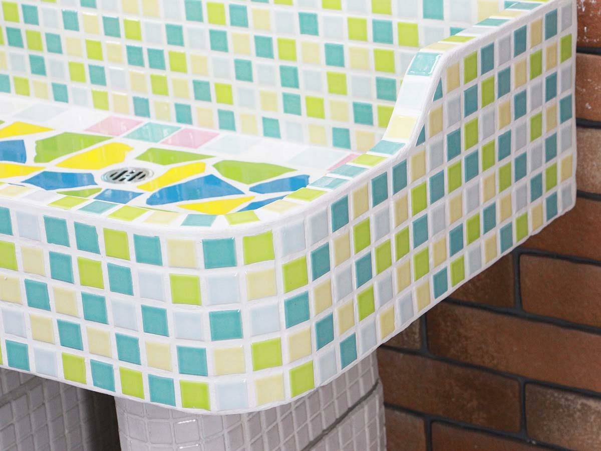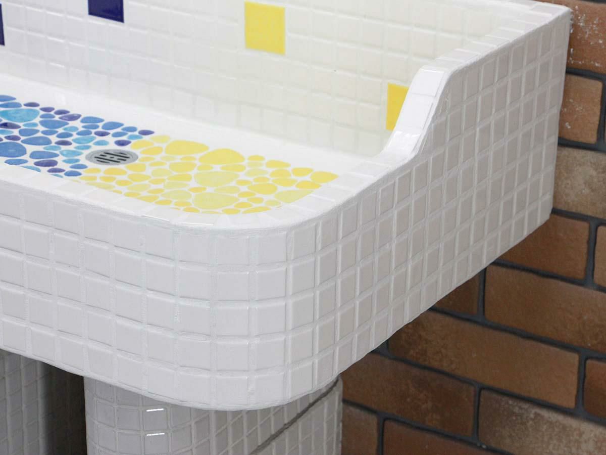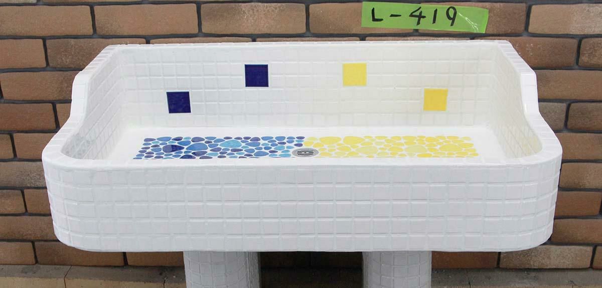 弊社では、【窯業・窯焼き】ならではのタイルを使用したガーデンシンクを取り扱っております。