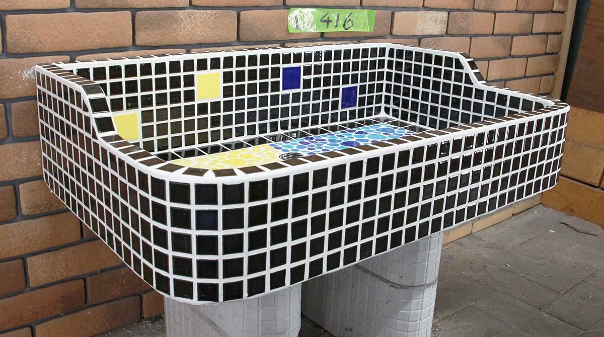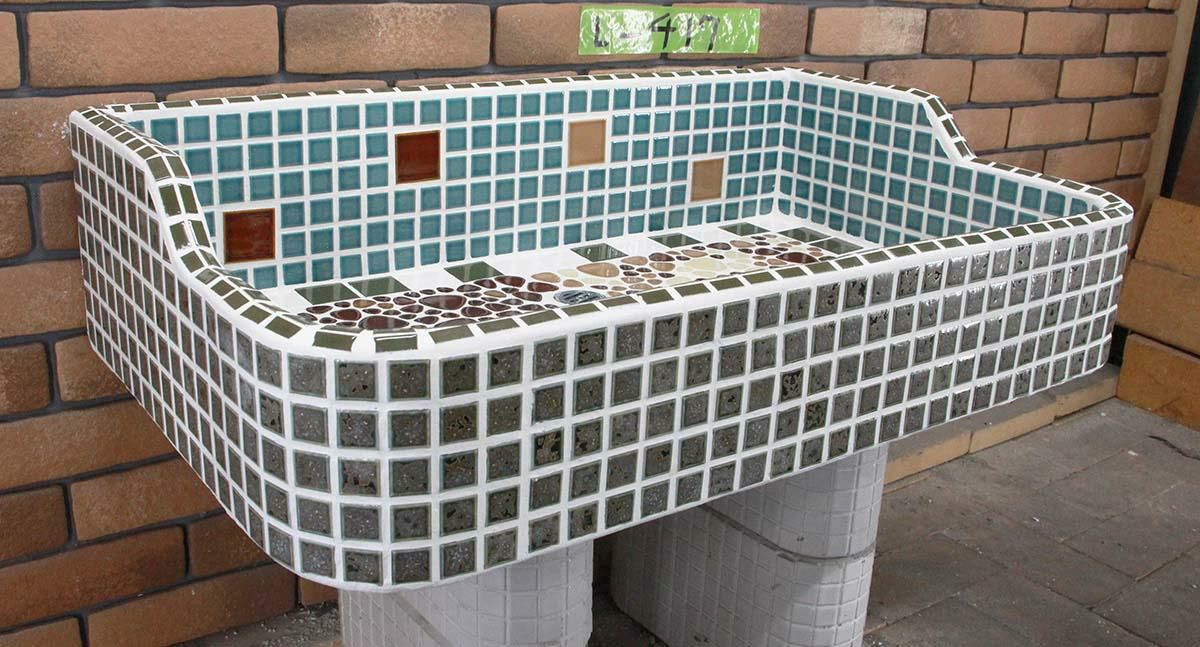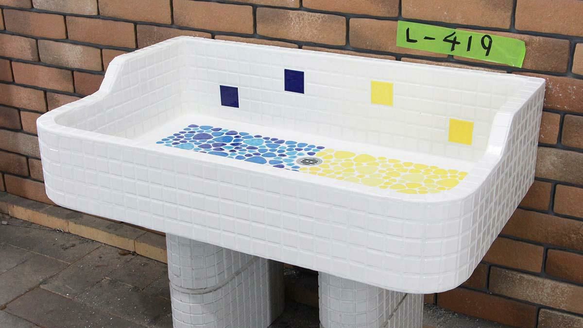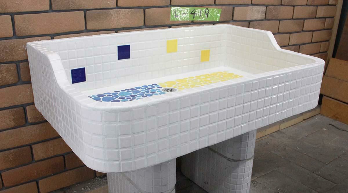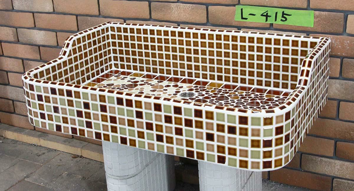 弊社では、【窯業・窯焼き】ならではのタイルを使用したガーデンシンクを取り扱っております。