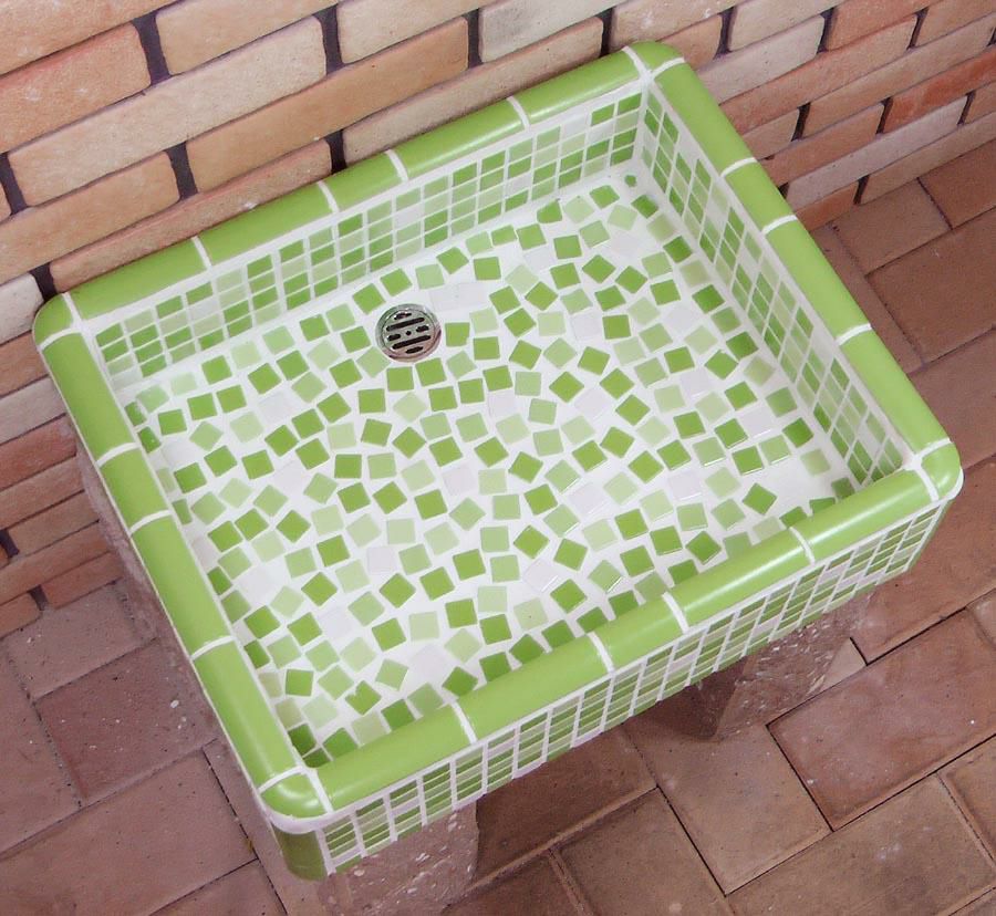 ガーデンシンク タイル 流し台 昭和レトロなタイル流し台 Mサイズ レトロMIXカラー スーパーホワイト生地を使用 送料無料 シンク タイル流し エクステリア お洒落 老人ホームなどにも大好評です