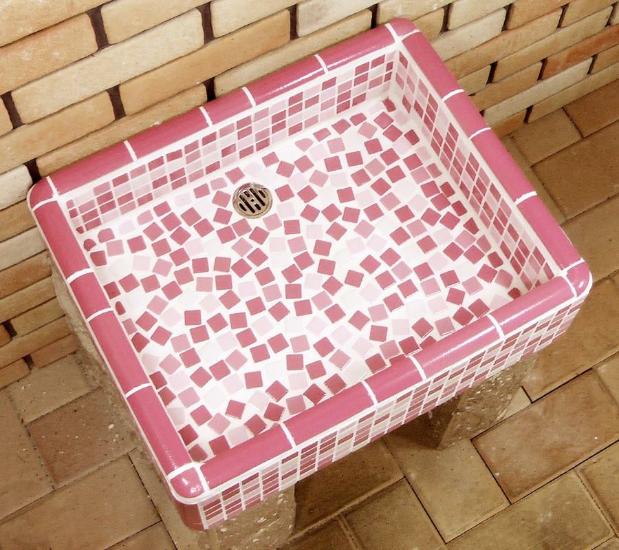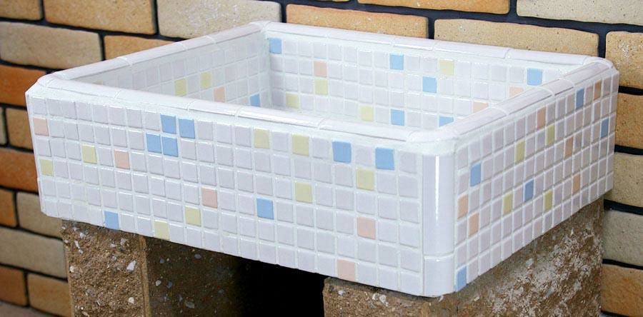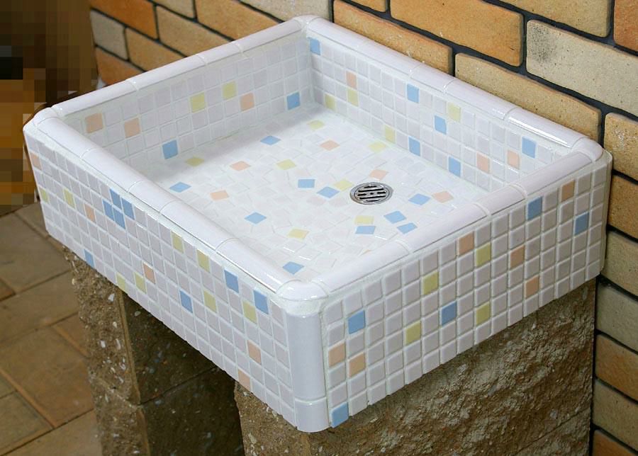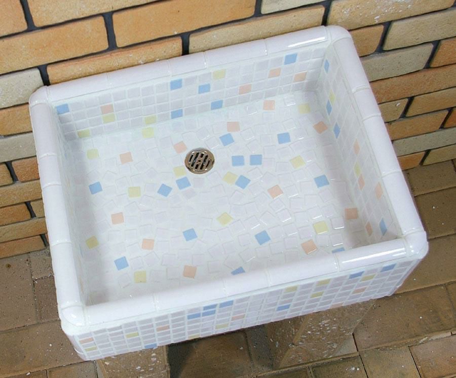 ガーデンシンク タイル 流し台 昭和レトロなタイル流し台 Mサイズ パステルMIXカラー スーパーホワイト生地を使用 送料無料 シンク タイル流し エクステリア お洒落 老人ホームなどにも大好評です