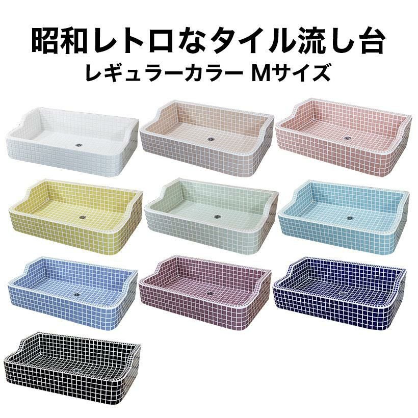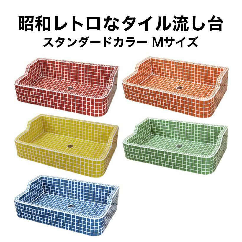 ガーデンシンク タイル 流し台 昭和レトロなタイル流し台 Mサイズ レギュラーカラー全10色 送料無料 シンク タイル流し エクステリア お洒落 老人ホームなどにも大好評です