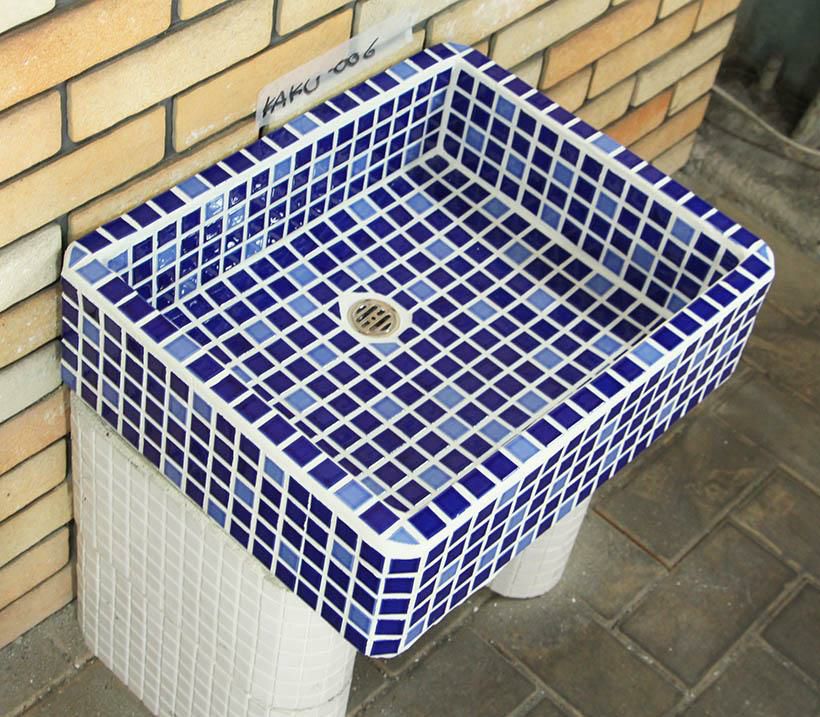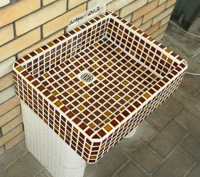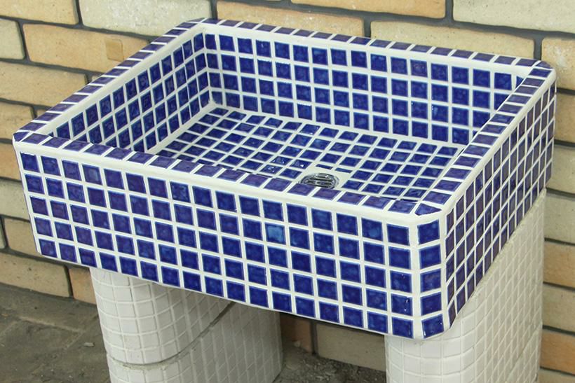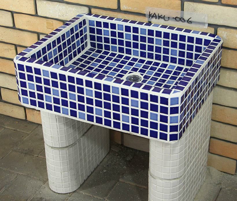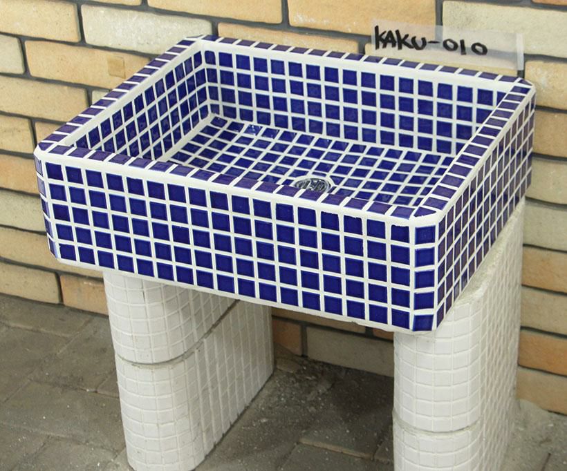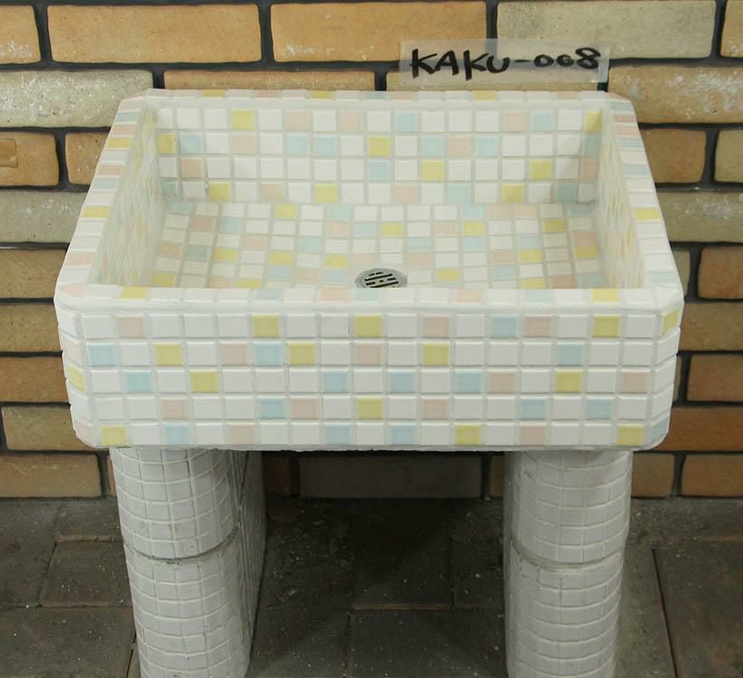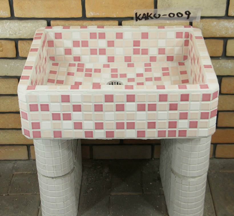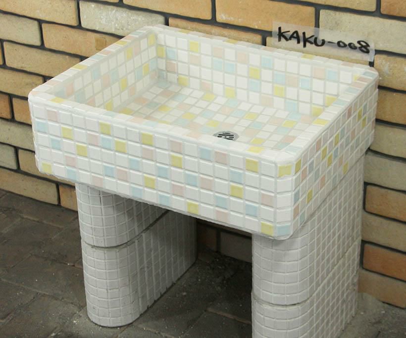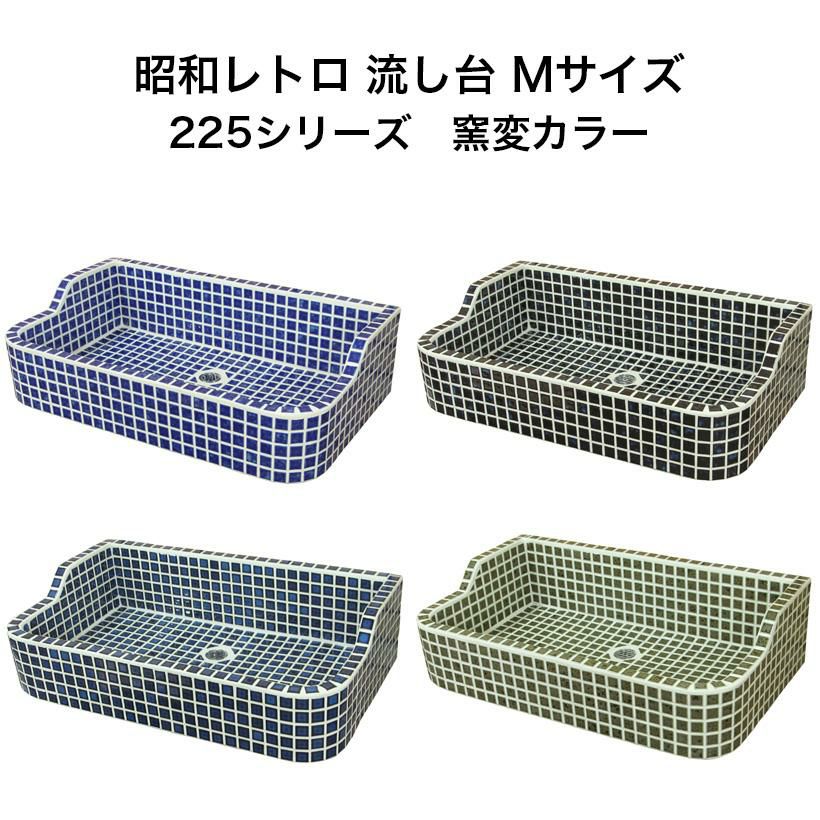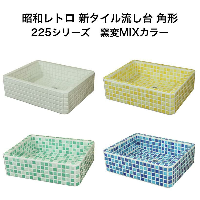 昭和レトロ 新タイル流し台 角形 225シリーズ 窯変ミックスカラー スーパーホワイト生地を使用 送料無料 ガーデンシンク シンク タイル流し