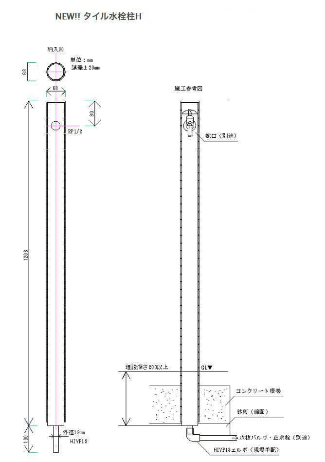 モザイクタイル張り手づくり水栓柱(蛇口は付属しておりません)