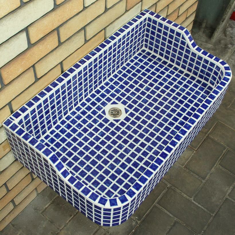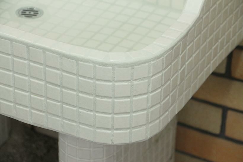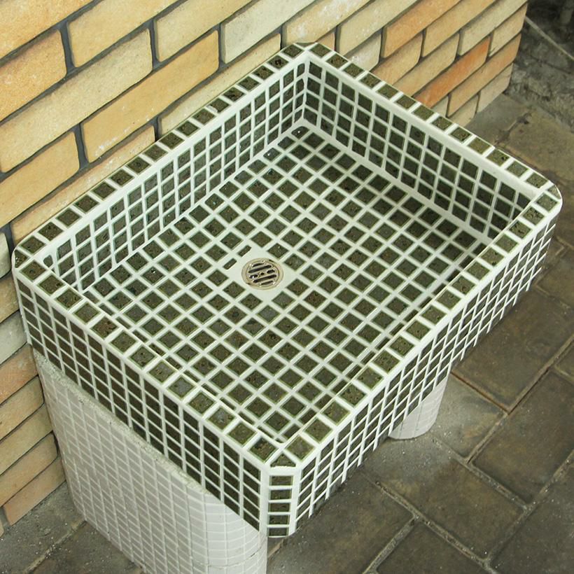 ガーデンシンク タイル 流し台 昭和レトロなタイル流し台 Mサイズ 窯変ミックスカラー スーパーホワイト生地を使用 送料無料 シンク タイル流し エクステリア お洒落 老人ホームなどにも大好評です