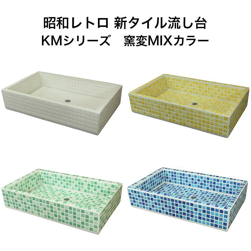 ガーデンシンク タイル 流し台 KMシリーズ 窯変ミックスカラー 昭和レトロ スーパーホワイト生地を使用 送料無料