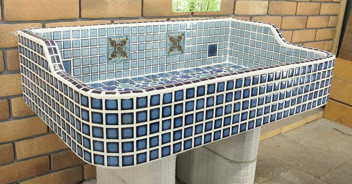 弊社では、【窯業・窯焼き】ならではのタイルを使用したガーデンシンクを取り扱っております。