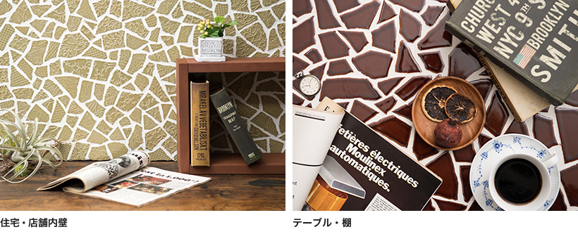 長年の職人の感覚により手で割られた、二つとして同じ形のないクラッシュタイル。
