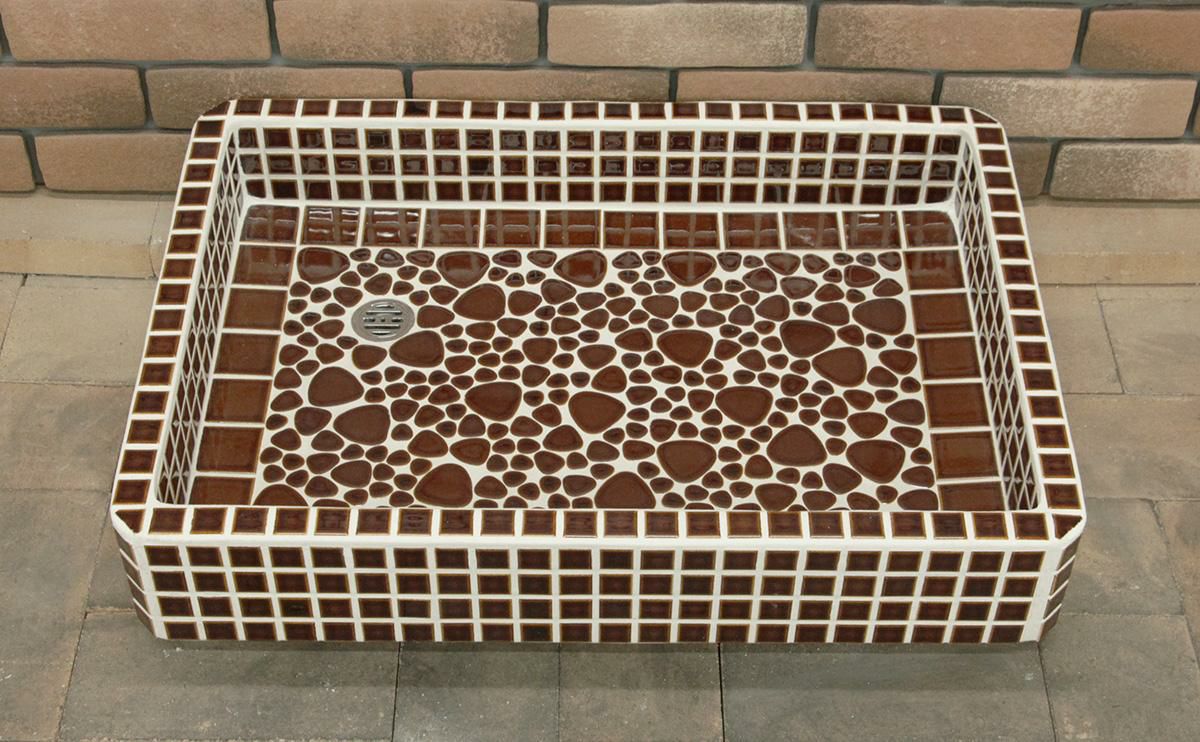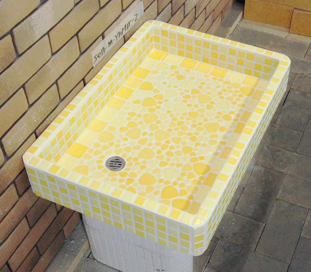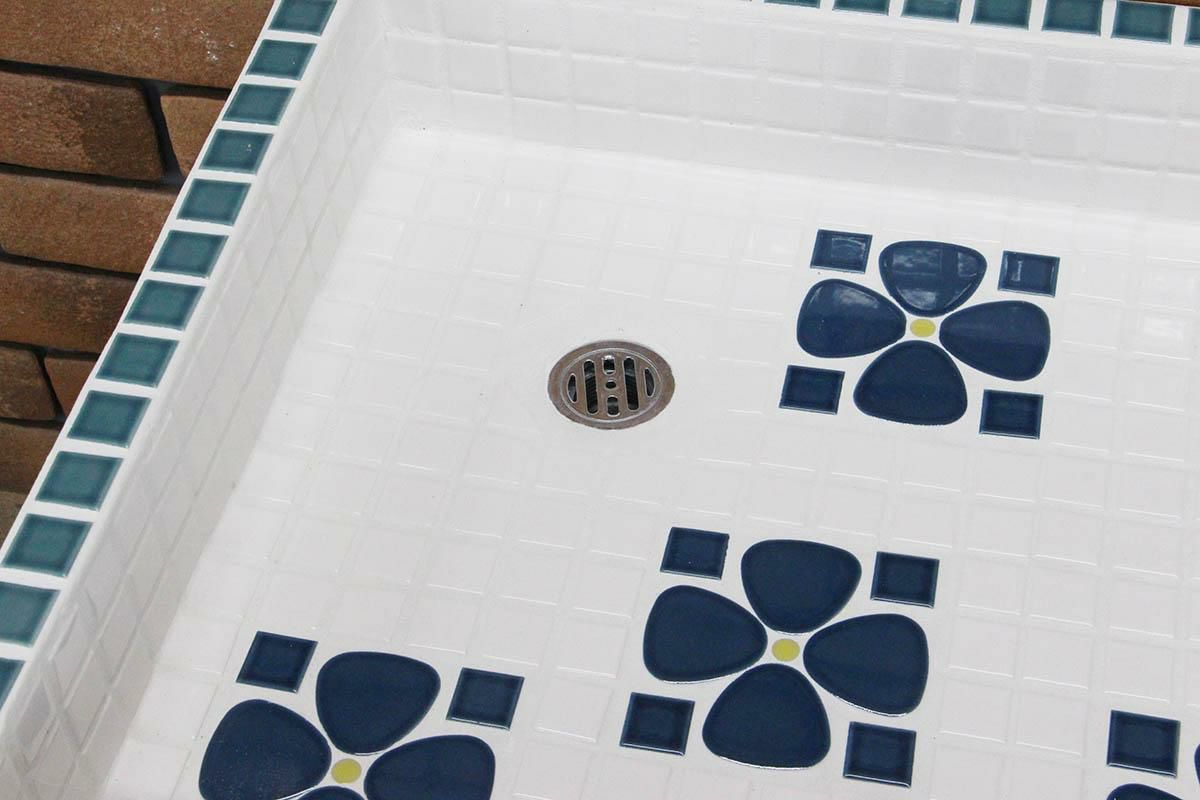 他の画像を見る ガーデンパン ガーデンシンク タイル 流し台 昭和レトロなタイル流し台 Mサイズ 窯変ミックスカラー底面YS使用 スーパーホワイト生地を使用 送料無料 シンク タイル流し エクステリア お洒落 老人ホームなどにも大好評です 定価 ¥ 55,000 のところ 販売価格 ¥ 44,000 税込 お気に入りに登録する
