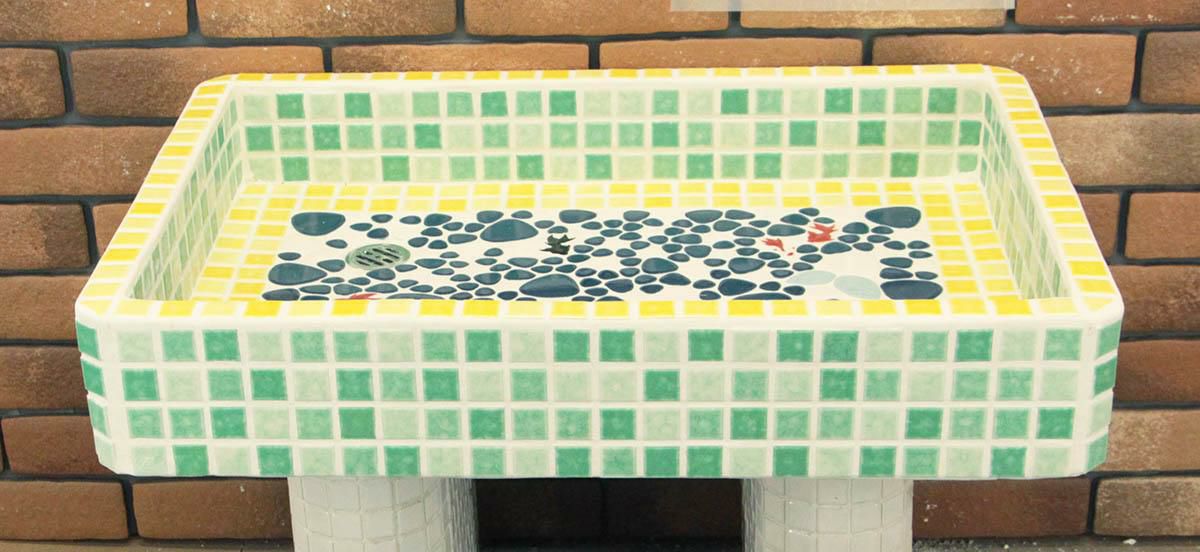 他の画像を見る ガーデンパン ガーデンシンク タイル 流し台 昭和レトロなタイル流し台 Mサイズ ミックスカラー スーパーホワイト生地を使用 送料無料 シンク タイル流し エクステリア お洒落 老人ホームなどにも大好評です 定価 ¥ 55,000 のところ 販売価格 ¥ 44,000 税込 お気に入りに登録する