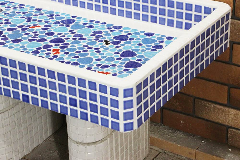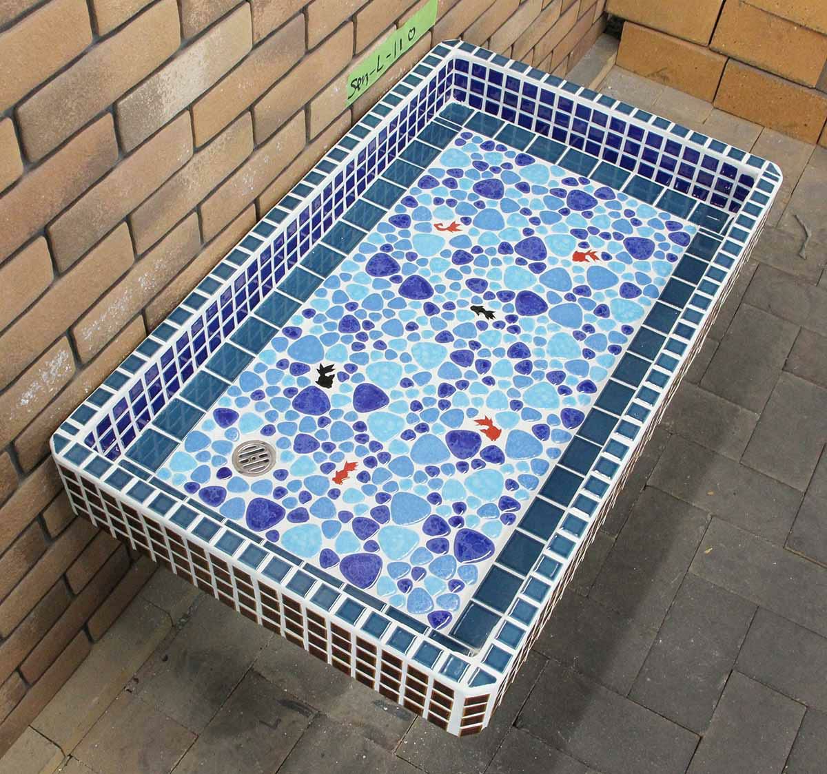 他の画像を見る ガーデンパン ガーデンシンク タイル 流し台 昭和レトロなタイル流し台 Lサイズ ミックスカラー底面YS使用 スーパーホワイト生地を使用 送料無料 シンク タイル流し エクステリア お洒落 老人ホームなどにも大好評です 定価 ¥ 85,000 のところ 販売価格 ¥ 68,000 税込 お気に入りに登録する
