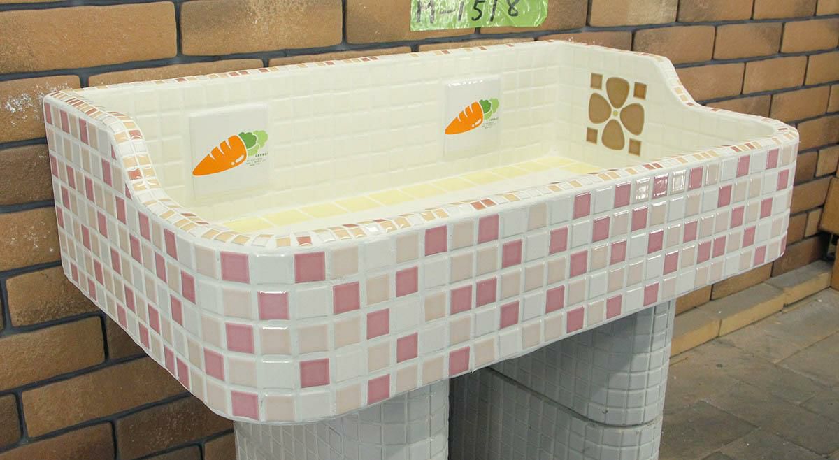 他の画像を見る ガーデンシンク タイル 流し台 昭和レトロ モザイクタイル張り MサイズM-1532 手作りガーデンシンク タイル流し台 エクステリア お洒落 老人ホームなどにも大好評です 定価 ¥ 55,000 のところ 販売価格 ¥ 44,000 税込 お気に入りに登録する