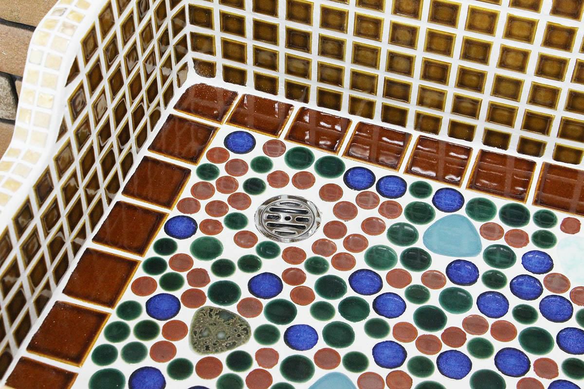 他の画像を見る ガーデンシンク タイル 流し台 昭和レトロ モザイクタイル張り MサイズM-225k-086-tm 手作りガーデンシンク タイル流し台 エクステリア お洒落 老人ホームなどにも大好評です 定価 ¥ 55,000 のところ 販売価格 ¥ 44,000 税込 お気に入りに登録する