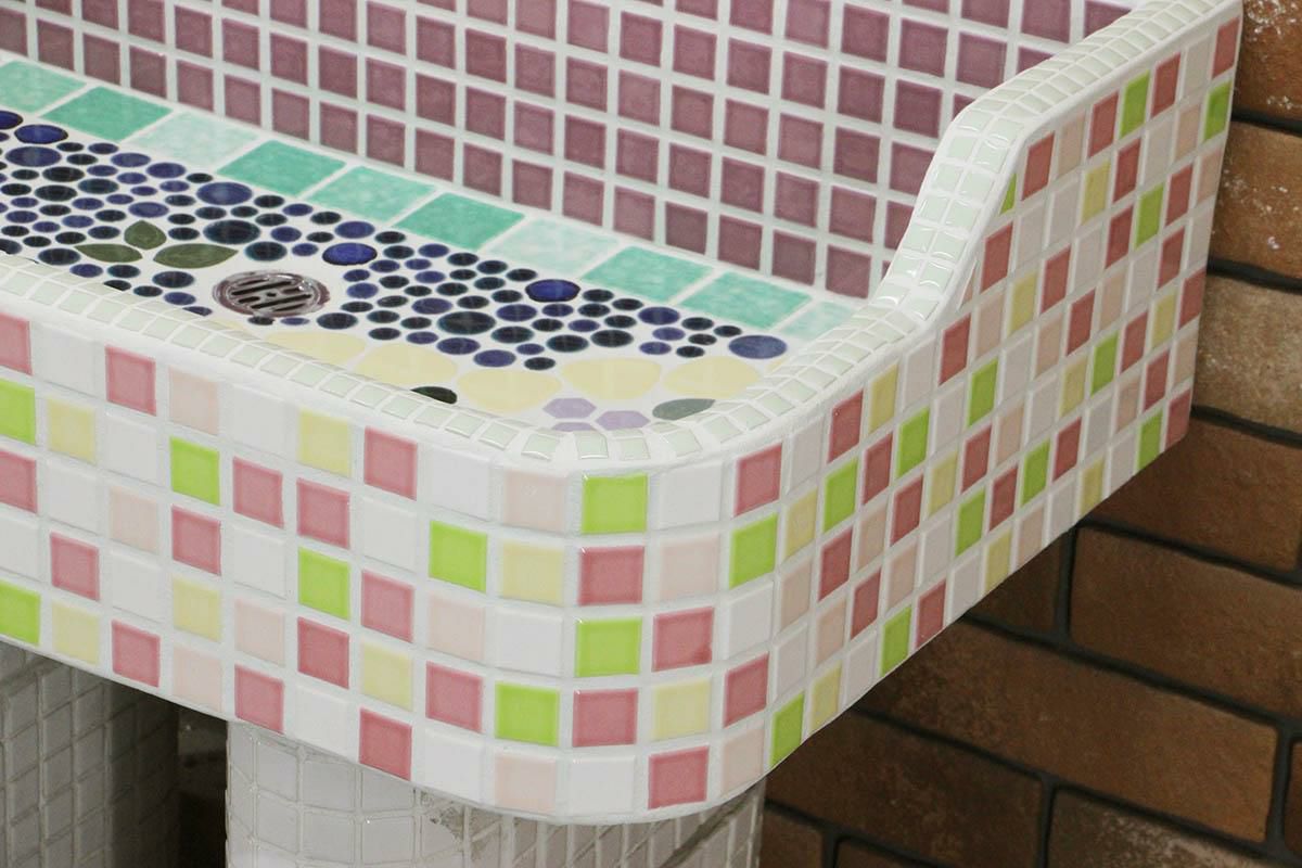 他の画像を見る ガーデンシンク タイル 流し台 昭和レトロ モザイクタイル張り SSサイズSS-160手作りガーデンシンク タイル流し台 エクステリア お洒落 老人ホームなどにも大好評です 定価 ¥ 52,000 のところ 販売価格 ¥ 44,000 税込 お気に入りに登録する
