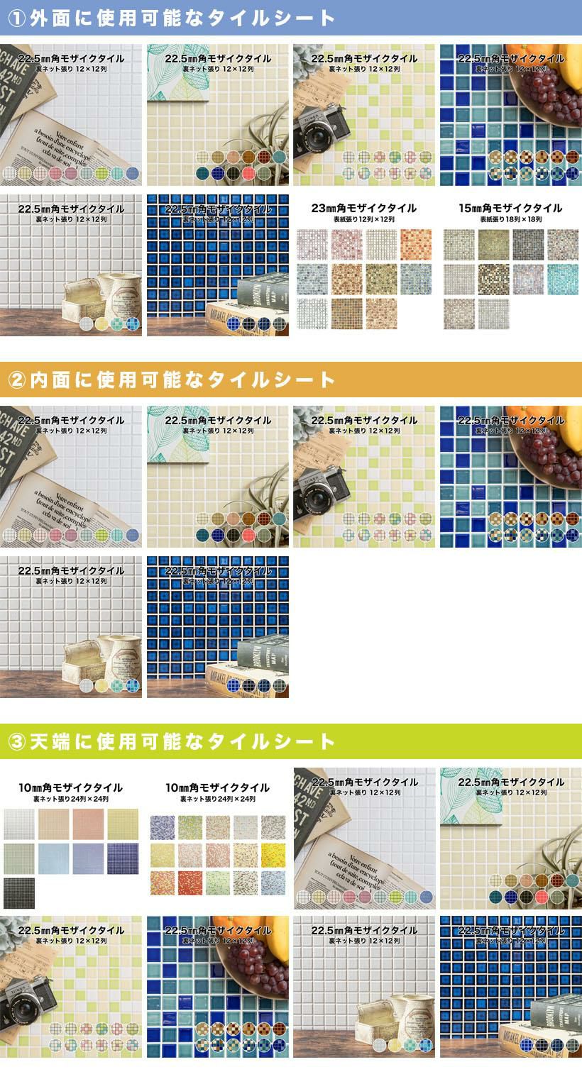 他の画像を見る 壁用 100角 タイル 1枚単位の販売 97.7×97.7×5mm 陶器質 内壁タイル ※北海道・沖縄・一部離島は注文不可 3,980円以上で送料無料 定価 ¥ 100 のところ 販売価格 ¥ 80 税込 お気に入りに登録する