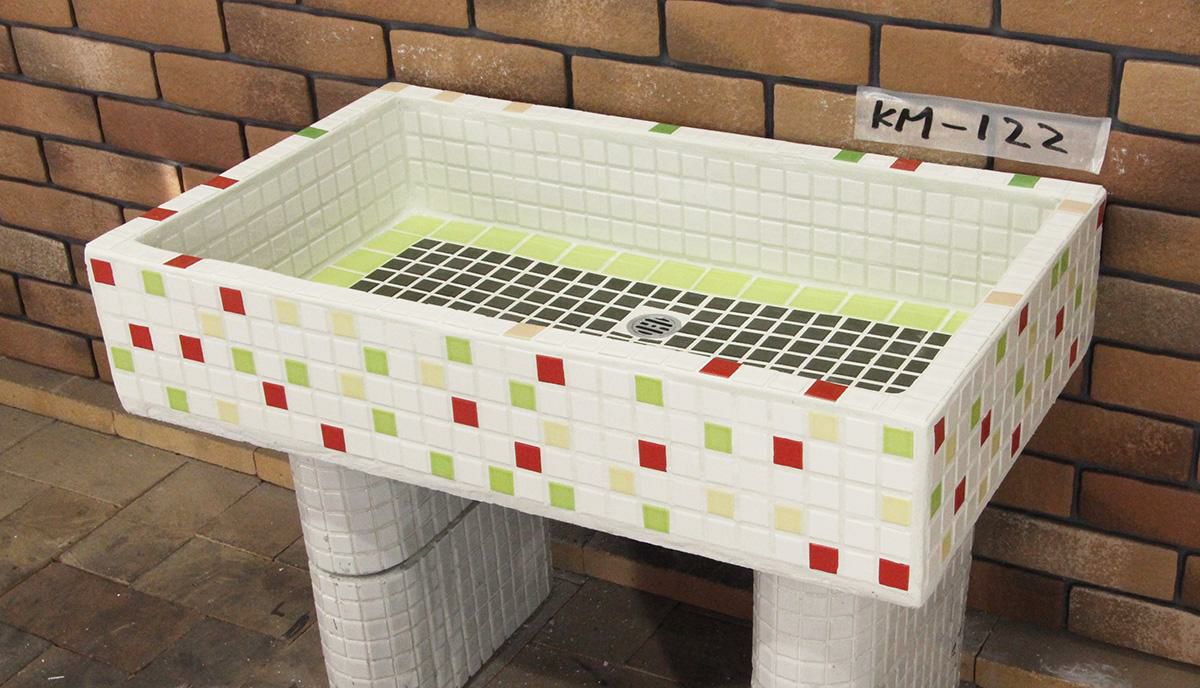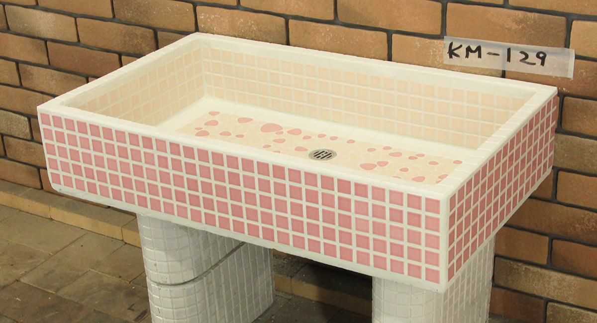 他の画像を見る ガーデンシンク タイル 流し台 昭和レトロ モザイクタイル張り KMシリーズ KM-129 手作りガーデンシンク インテリア お洒落 老人ホームなどにも大好評です 定価 ¥ 55,000 のところ 販売価格 ¥ 48,000 税込 お気に入りに登録する