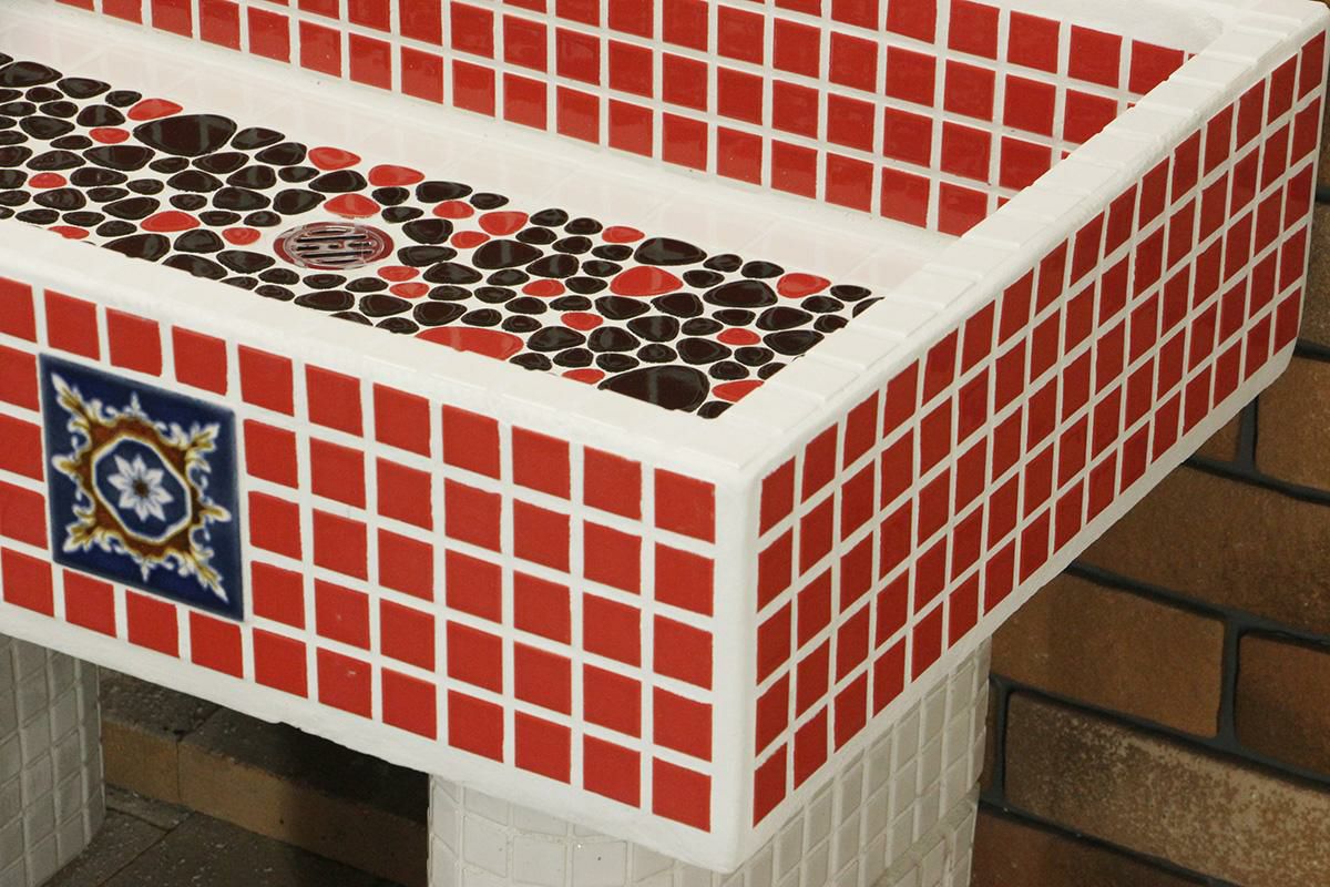 他の画像を見る ガーデンシンク タイル 流し台 昭和レトロ モザイクタイル張り KMシリーズ KM-122 手作りガーデンシンク インテリア お洒落 老人ホームなどにも大好評です 定価 ¥ 55,000 のところ 販売価格 ¥ 48,000 税込 お気に入りに登録する